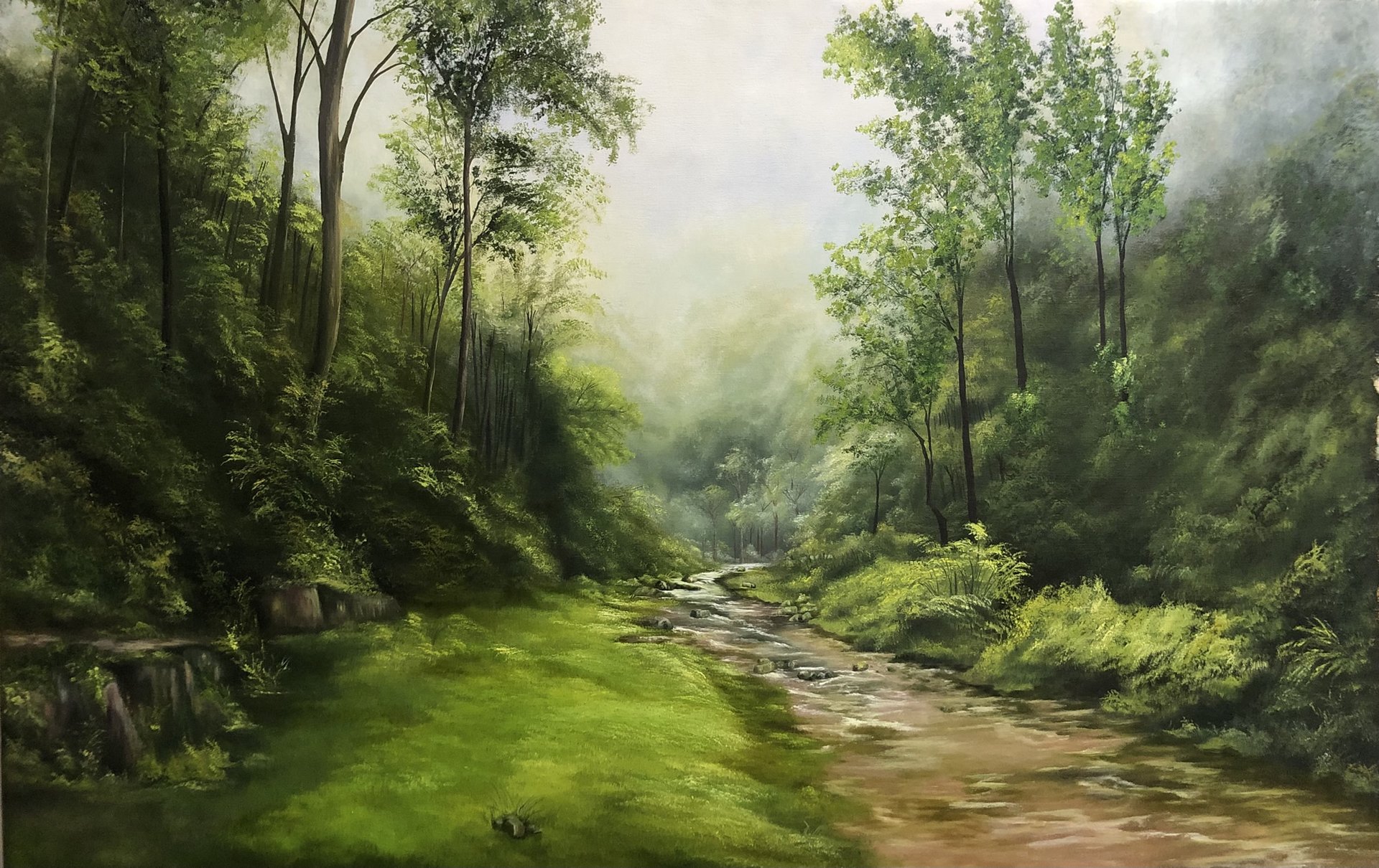 O artista trabalha a paisagem como um lugar de suspensão do tempo. Montanhas, florestas, clareiras e horizontes surgem menos como cenários geográficos e mais como estados de contemplação, evocando um silêncio que convida à introspecção. A matéria pictórica é construída por camadas que revelam um processo lento e meditativo, no qual o gesto e a cor atuam como veículos de percepção ampliada.Sua prática dialoga com tradições da pintura de paisagem romântica e simbolista, ao mesmo tempo em que se aproxima de investigações contemporâneas sobre espiritualidade, ecologia e experiência sensorial. A luz desempenha papel central, não apenas como elemento compositivo, mas como força narrativa, sugerindo revelação, transcendência e passagem.Ao propor paisagens espiritualizadas, Moises Miranda busca criar imagens que não se esgotam na observação imediata, mas que operam como espaços de permanência e escuta. Suas pinturas convidam o espectador a desacelerar o olhar e a reconhecer, na paisagem, um espelho do mundo interior e da dimensão sagrada da experiência humana.