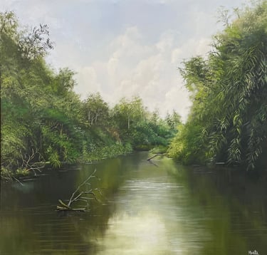 A pintura de Moises Miranda investiga a paisagem como espaço de transição entre o visível e o invisível. Suas obras não se propõem a representar a natureza como registro fiel, mas como campo simbólico e sensível, onde memória, espiritualidade e experiência interior se manifestam por meio da cor, da luz e da atmosfera.